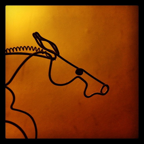 It’s a beautiful wedding present… a whole wire frame horse which gallops when you turn the wire handle…
