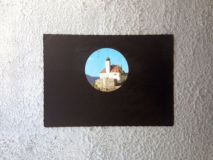 A number of postcards from around the world have been salvaged and aggressively screen printed at, by me. This is one of them.